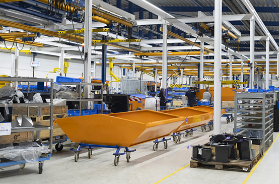 In de productiehal wordt het frame in elkaar gehecht en klaargezet voor het lasproces.