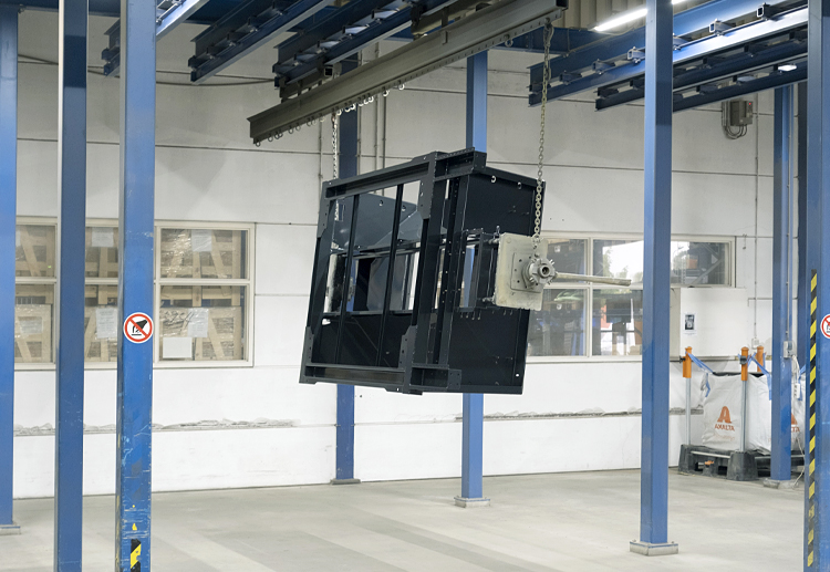 Na het lassen staat de onderbak klaar voor een beschermende coating tegen slijtage en weersinvloeden.